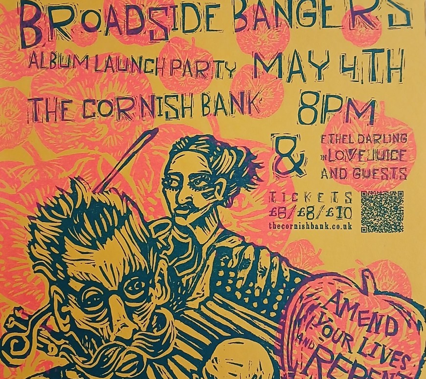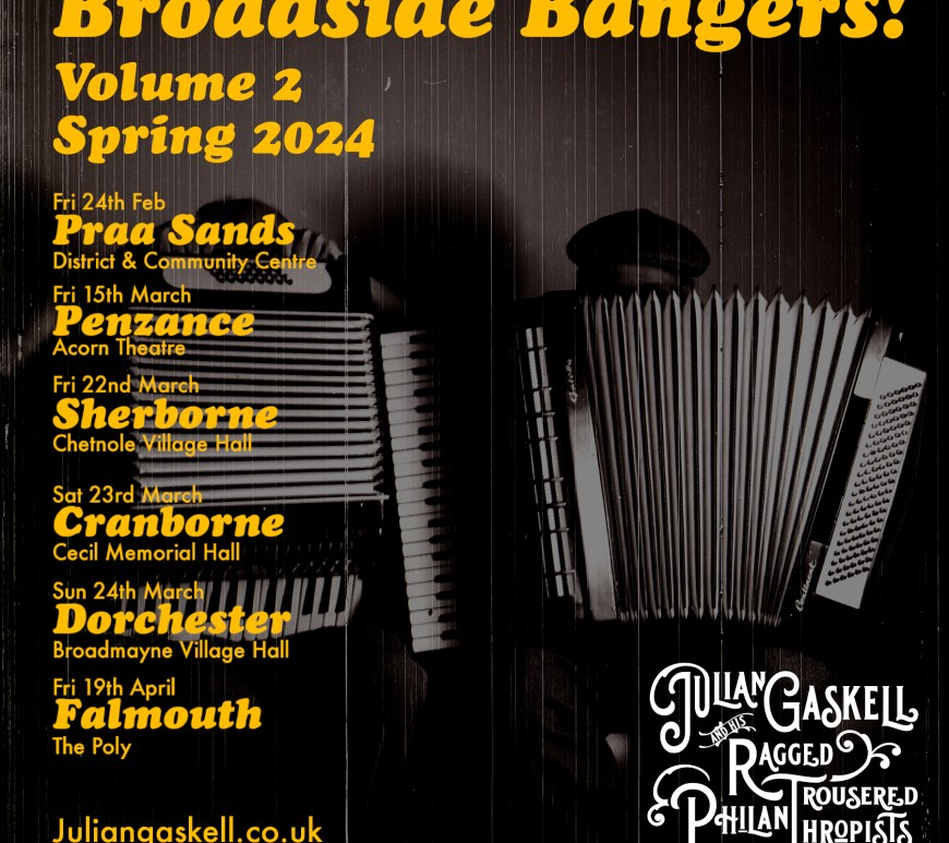Julian Gaskell & his Ragged Trousered Philanthropists will be returning to the Cornish Bank on Sunday May 4th for a concert to celebrate the long-awaited release of our album Broadside Bangers on Kroustpop! Records. The Ragged trio of Gaskell, Gibson and Sharpe will be performing ballads from the album as well as a selection of oldies and originals, plus there will be a performance of … Continue reading Cornish Bank, Sunday MAY THE FOURTH